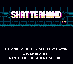 Tokkyuu Shirei Solbrain (特救指令ソルブレイン Tokkyū Shirei Soruburein?, lit. Special Rescue Command Solbrain) is a video game based on the series of the same name which was released in Japan in 1991 for the Famicom, published by Angel and developed by Natsume. It was later modified into Shatterhand, which was published by Jaleco for the Nintendo Entertainment System in North America and Europe shortly after the Japanese release. The differences are mainly cosmetic (changing graphics and plot) but there were also several substantial changes, such as which boss appeared in which area. In addition, the theme-park stage from the Famicom version was replaced with a nuclear-submarine stage in the NES version.4 Hacks