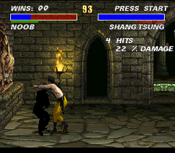 This hack enables Noob Saibot as a playable character. He is unique in this game as he is a darkly colored Kano with his combos and no special moves. He also moves faster.Screenshots