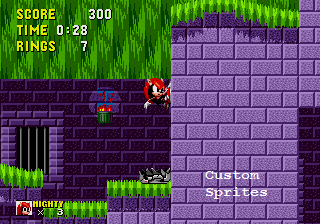 This is a hack which replaces Sonic the Hedgehog with Mighty the Armadillo. His gameplay is styled after his appearance in Knuckles Chaotix. This includes a wall jump ability which can be performed by pressing the jump button while against a wall. From then on press jump again to jump of the wall in the chosen direction. Mighty also has the ability to break through breakable walls by walking into them.Screenshots