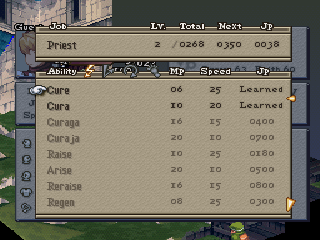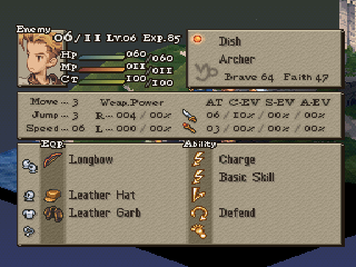 This is a relatively simple hack that fixes Ability, Equipment, Job/Monster, Treasure, and Unexplored Land names in Final Fantasy Tactics to something a bit more recognizable with today's FF terms. This is meant to be done without affecting the original translation much as well as fixing translation errors, so the plot dialog has not been changed. Because of this the name changes are not 100% the same as War of the Lions: this patch uses a few WOTL terms, but also many already existing FF terms as sources. Most of the terms lifted are those in the GBA and PS1 eras to provide some familiarity with the games it was made around, as well as the originally used Japanese names.Screenshots
