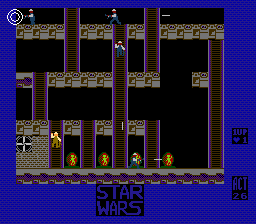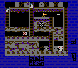 This hack turns Battle City into a semi-platformer, there is no jumping but you run on platforms, climb ladders, and shoot at enemy robots.Screenshots