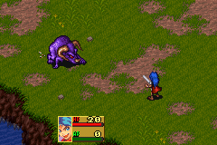 The colors of the GBA port of Breath of Fire were brightened up, in order to be more visible on the original GBA who lacked backlight on the screen. If you play with a GBA-SP or NDS, or emulation, the brightened up colors aren't necessary, and this patch just return the SNES colors. It looks much better in comparison ! The only complain I have is that they also "restored" the dialogue box background, as well as the menu, from the blue color of the GBA game to the blueish-dark gray of the SNES game. Since the dialogue box and menus on the GBA are completely different than on the SNES anyway, I found it was fine to have it in a new color, and they should have made it an option for it to be back to it's SNES colour. | |||