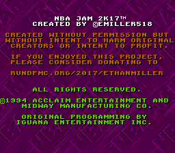 This is a roster hack of NBA Jam TE that updates the roster to players from the 2016-17 season. It also adds new secret characters.Screenshots