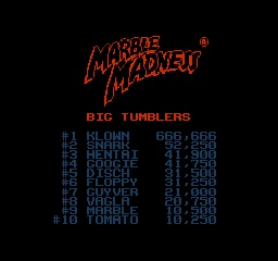 This is a graphics mod and a timer mod. The easy version gives you extra time, the hard version gives you half of the normal starting time. Besides some color swapping on the landscapes and the marble being orange, I was unable to identify anything else different about the game. I have been quietly hoping for a Marble Madness romhack for ages, wishing that there were more levels to play because it was such an amazing game and much too short. Maybe it's because I was hoping for something more than this when I saw it, or maybe I just want to be able to read how much time I have left but the orange-on-orange timer block wants me to be unhappy. Not to discourage the creator, I hope this leads to more robust mods of Marble Madness with new levels in them. | |||