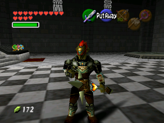 This hack replaces Young Link with a Stalchild and Adult Link with Ganondorf.Screenshots