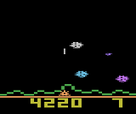 Developed by Hal Finney as a port of the Intellivision's [I]Astrosmash[/I], [I]Astroblast is a space shooter involving using a laser cannon to destroy falling meteors, bombs, and other targets. Avoid the UFO's missiles, split up the big rocks, take out the spinners... all while trying to keep the pace and top your peak score.Screenshots