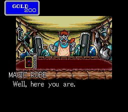 - Armorer shop: Woven Robe, Hemp Robe, Leather Armor, Chainmail, Leather Robe, Bronze Armor, Iron Armor, Magic Robe.