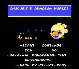 A small hack of Bomberman that modifies Bomberman to have a Chocobo-like wrapper around various graphics and sprites, with some text modified for the end. It's really just a fun little hack ^^Screenshots