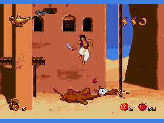 This patch adds the Color Hack of Aladdin, for Genesis / Mega Drive (made by Ediney Lopes), to the Aladdin-Remix edition of the game (also called "Final Cut edition"), released in 2019 by Disney for modern devices, for download, as part of a small Aladdin+Lion King collection. This is the first version of this hack that removes the Portuguese translation, made by JVS Games, included in it, which was impossible not to get this hack with. That is: if this patch is applied to an original Remix ROM in English, the colour-hacked resulting ROM will still be in English. If this patch is applied to a ROM patched to Spanish, Russian or whatever, the colour-hacked resulting ROM will still be in Spanish, or Russian, and so on.Screenshots