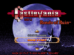 Castlevania Rondo of Ruin is a Castlevania Portrait of Ruin romhack aiming to modify most of the games content. There is a new story, new items, sprites, weapons, music, and most of the games areas are modified in both small and big ways. Set 5 years after the events of Symphony of the Night, join Richter Belmont, Maria Renard and their companions as they work to unravel what has caused Castlevania's early return to the world of humans.Screenshots