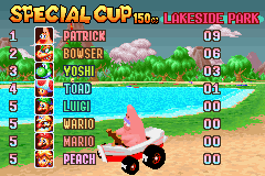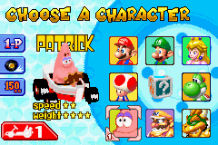 Patrick finally faced his fears by joining the Mario Kart: Super Circuit roster! Patch to an US rom.Screenshots
