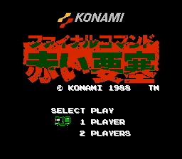 This hack recreates the title logo of "Final Commando: Akai Yousai", the Famicom Disk System (FDS) version of the Famicom/NES game "Jackal".Screenshots