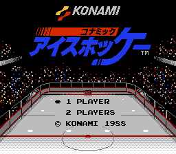 This hack recreates the title logo of "Konamic Ice Hockey", the Famicom Disk System (FDS) version of the Famicom/NES game "Blades of Steel".Screenshots