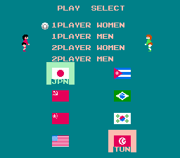 This hack recreates the Famicom Disk System (FDS) Japanese version of "Volleyball" on the NES.Screenshots