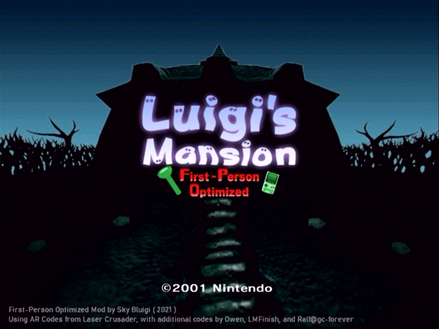 made possible using an Action Replay code by Laser Crusader. This novelty hack makes the game fully playable through the eyes of Luigi, transforming the GameCube classic into an unusual sort of FPS; one focused on hunting ghosts in a spooky mansion, presented as a lighthearted adventure with some eerie undertones.
