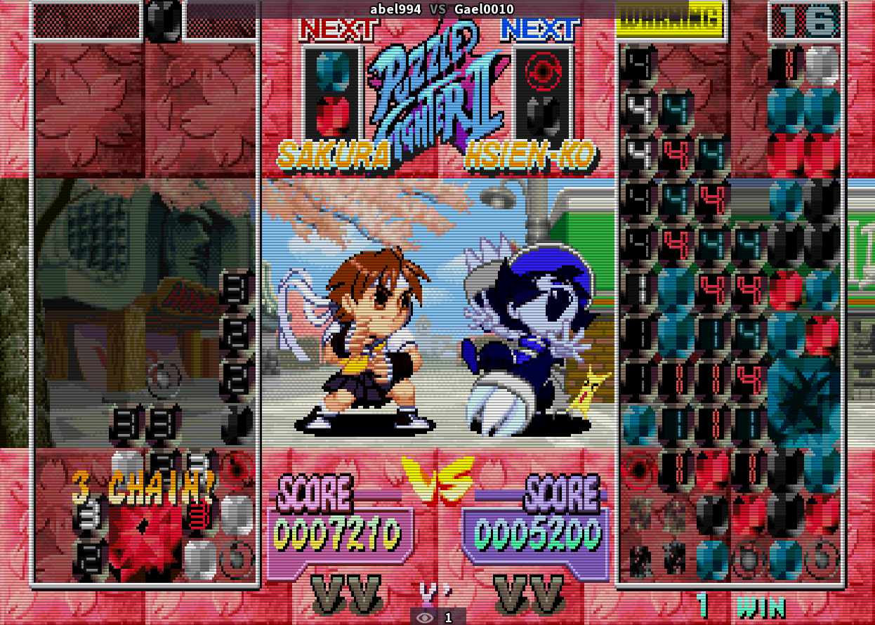 Puyo-Puyo and Tetris seem to get all the puzzle matching glory nowadays, but SPF2T has always been great fun that can be also wholesome. Colorblind patches such as this go to show just how dedicated and caring the community can be, working towards giving everyone a piece of the fun puzzle action that is often ignored, but never forgotten. It never hurts to have more palettes to choose from, also, if accessibility isn't what one is going for by grabbing this patch. There's something for everybody. Also, as the author points out, it is compatible with the X' Rebalance patch, made by a different person and I implore that Puzzle Fighter fans also try it: that one brings the balancing seen in the PS3/360 "HD" version, but now without that lazy filtering and overdone effects. Look for Puzzle Fighter X Prime. | |||