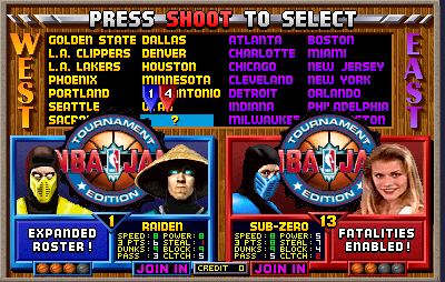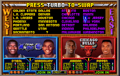 NBA Jam Rewind is a ROM hack of NBA Jam TE (rev 2.1 2/06/94) that adds Michael Jordan and Shaquille O'Neal into the lineup. Along with this, the secret Midway team is unlocked by default.Screenshots