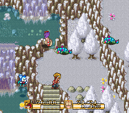 This is an excellent hack; highly recommended to fans of the original game, especially if they thought it was too easy. At the beginning, some things are easier and some are harder, but by the end, it's straight-up harder, largely because you don't auto-dodge every single attack, and traps don't go away until much later. Bosses are a bit inconsistent, though; some are totally viable to take down with weapons, whereas others take so little damage from anything other than magic, you'll resort to chain-casting before long. The elementals are rebalanced, too; each one of them now has at least one dedicated attack spell, even Luna! Unfortunately, some of that potential is squandered a bit, as there still aren't all that many enemies who are weak against Luna or Dryad. Stylistically, though, this hack is spectacular. Don't go in expecting a deep analysis of climate change or anything, because it wasn't meant to be that; it's more a premise for changing around the environments, and they look great! My personal favorites are the Upper Lands, Matango, and Kakkara Desert, but most of them are beautiful. There were a few that were too bright (the Pandoran ruins come to mind), but not many. Enemies have some crazy new colors, too, since their positions were changed, and they largely kept the same palette (as well as stats and item drops) as what used to be there. For example, the first enemy you run into is a howler, but it's the same color as a rabite. The only other tweak I might suggest is changing the elementals' dialogue; you get the elementals in a different order from before, and while that's mostly fine (though I would've liked to get the healing spell sooner), the way they speak hasn't changed. I know that they weren't given a lot of personality in this installment, so many are fine, but some are a little awkward, particularly Shade. | |||