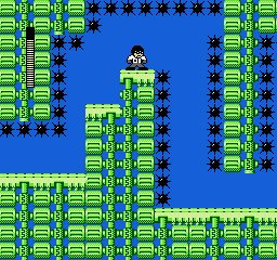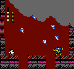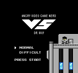 AVGN VS Dr. Wily Levels: Bad Graphics: Eh (Only a sprite change and some palette tweaks) Music: No Change Enemies: No Change Bosses: No Change Weapons: No Change Castle: Bad Difficulty: EASY (Occasionally HARD) Comments: This hack is a masterclass of bad design. All of the stages are the exact same, except that there's been two spaces-wide pits added everywhere as a feeble attempt to increase difficulty. On most stages this is a negligible difference (Air Man, Flash Man), but Heat Man's stage in particular is a hellish nightmare of repetitive tight jumps. Only slightly amusing thing is the AVGN sprite and opening logo—otherwise this hack is to be avoided at all costs. | |||
