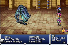 In Final Fantasy 5, characters can learn a ridiculous number of skills... and only have a use for a few of them. This is because characters are given only four battle commands, and most classes pick three of those for you. Therefore, you really can only combine two classes at a time, until you use one of the two end-game classes made available to players— the Freelancer (which gives you Fight, Item, and two chosen abilities), and the Mime (which allows the Mimic command and *three* chosen abilities). This hamstrings the possibilities that the game's engine seems to want to give the player, and in my opinion reduces the fun that could be had.Screenshots