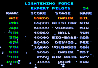 This patch is designed to add a simple saving mechanism for High Scores in Lightening Force.Screenshots