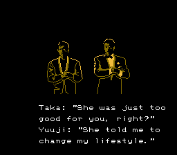 The game is a 2D 1-2 player side scroller. You the player control Taka or Yuuji, or both of these characters at the same time. You'll find yourself up against many enemies of the Yakuza gang, "The Silver Stars", and then later on leading you to corruption within the police department and to the main villain at the end. While playing the game you'll also run into three mini-games, which are a shooting gallery, a fast paced car ride and a shootout with one of the boss enemies.Screenshots
