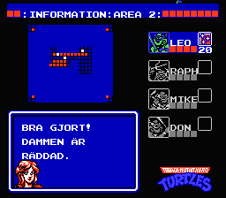 This is a Swedish translation of Teenage Mutant Hero Turtles for the NES.Screenshots