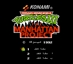 The translation of Teenage Mutant Ninja Turtles III - The Manhattan Project to Arabic for Nes. Proudly presented for Arabic speakers residents by Hisoka.Screenshots