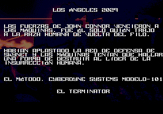 Translation to Spanish for "The Terminator", for the Sega Genesis/Mega Drive.Screenshots