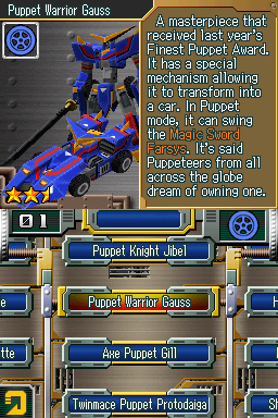 Chou Soujuu Mecha MG (Super Control Mecha MG) was developed by Sandlot (of Earth Defense Force fame) and released back in 2006. Sadly the game did not reach stateside. You play a young kid, a "Puppeteer" who pilots huge, handmade mechanical robots called "Marionation Gear" or MG. (If any of you has played Brawl, I think there's a trophy and music track that's taken from this game). So, a typical anime storyline ensues, where you go around the world fighting other mechs and tanks, racing cars, carrying construction stuff around, escorting allies, protecting buildings, all while controlling your Marionation Gear. It is important to note that the mecha (hereafter I'll refer to as MG) in this game are big and lumbering machines. The MGs are more Robot Alchemic Drive (if you've played the old PS2 game, also developed by Sandlot) and "tanks with arms and legs", and less Armored Core or Gundam. Controlling your MG is slow and clunky on purpose. You are supposed to feel like you're operating a piece of heavy machinery, not unlike a crane on a construction site. What makes the game special is with how it uses the touchscreen. Each of the game's MGs have a unique interface or control box from where you control the mech. The only use for the direction buttons is for moving your MG and turning it, the rest is done through the touchscreen. One MG might use a cross-shaped lever to move its arms, while a wheel beside it enables swinging its sword. A switch above it may transform it into a car, (car mode and humanoid mode also have different interfaces) which has its own steering wheel, and acceleration is controlled by a gear shift to your right. Some have buttons that fire missiles. A bunch have bows which you drag before firing. One MG which fires a revolver has you dragging bullets into the chamber, swiping the barrel in place, then swiping the trigger again to fire. I don't think I'm exaggerating when I say this might be the most creative use of the touchscreen the DS has to offer. And there are more than 100 unique mechs all with unique control boxes. Each MG also has multiple slots for parts, which you can buy in the shop or get as rewards. The parts increase various stats of your mech, whether it's top speed in car mode, damage while slashing, shooting attack, durability, etc. For durability, you're only able to use an MG a certain number of times consecutively before it goes for maintenance/repairs, so you can't just bulldoze through missions on one single powerful MG. Of course having all these unique MGs with multiple parts wouldn't amount to much if we didn't have any missions to use them on. This game has it in spades. Supposedly the game has 120 missions, with each mission having 4 difficulty mode from easy, medium, hard and super hard. Missions are taken on in a world map which are interspersed with story sequences. I've played for roughly 15 hours already and have only unlocked 33% of the game according to the completion percentage. And this is with the benefit of save states, some missions are challenging and will surely prompt multiple tries. Like what I've said above, mission types are abundant. There are your usual destroy all enemies mission, as well as racing, escort, defend the structure, collect/destroy more structures than your opponent, time trials for carrying stuff around. Or how about this bizarre stage where you're asked to collect Moai statues so a young heiress can decorate her backyard? (This game's stages and maps are wild. So far I've spotted, apart from the Easter Island I've mentioned, a jungle not unlike the Amazon, the Arc de Triomphe, the Louvre, Eiffel Tower, a ninja village, the Notre Dame cathedral, what looks like the Himeji Castle, a Grand Canyon lookalike, as well as several more my geographically-challenged brain is surely missing. These structures either act as landmarks within a map, or the base of a workshop where you can buy MGs.) Aside from the mission types, there are also a lot of enemy types, from your missile toting MGs, to powerful melee specialists, annoying flying type enemies, etc. Which brings me to my next point, even if there wasn't a durability system preventing you from using one favorite MG all throughout the game, you couldn't. Some missions are tailored to specific MG types. One mission might have multiple long range enemies where a melee MG won't survive. Another may be a time trial where a slow, lumbering but powerful attack MG wouldn't pass, but a much cheaper and weaker one would do so because it specializes in carrying and throwing packages. Obviously an MG which couldn't transform to vehicle mode will get smoked in the race missions. The various MG, mission and enemy types make for a surprisingly fun and varied experience as you inevitably try to learn each of your MGs' strengths and weaknesses. Replayability is tops too, you may try to challenge yourself to finish a mission on a harder difficulty, or use an MG ill-suited for it. Presentation-wise, the game IMHO pushes the DS's capabilities. I would hardly expect beautiful 3D graphics in an open map with destructible buildings on this handheld, and yet the game does it smoothly without slowdown or lag. The MGs themselves as well as their interfaces are creatively made, and I loved discovering what each MG had "under the hood" so to speak. The character sprites in the story sequence though are nothing to boast about, just your usual anime style. Not impressive, but not distracting either. Sound and music are functional enough (like I said, one music track was good enough for Nintendo to include in Smash Brawl), but I have to say that the game's clunks and squeaks and sound effects are satisfying to hear. The way the MGs sound as they saunter while the screen shakes really give you the feeling that you're piloting this huge steel behemoth. Same goes for the story; it's nothing special, your typical shonen anime storyline (think something like Beyblade) with your usual character trop