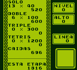 Translation to Spanish for "Tetris" for the Game Boy.Screenshots