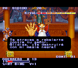 This is the first existing translation from English to Spanish of this game that completely translates the texts with accents and special symbols of Spanish language, as the "ñ" letter, and the opening question and exclamation marks, "¿", "¡". It also adds accents to big letters, that appear after defeating a boss. It's the first translation to Spanish of KOD, besides, to translate those graphics of the game that contain texts, such as the words "WORLD MAP", "STAGE ??", character class names (Elf, Wizard, Warrior, Cleric, Dwarf) and "Player select" logo in the player selection screen, Magic Crystals' descriptions, level-up items, and others. At the same time, it is respectful with the original art and font style of such graphics, including in the complicated cases the Spanish equivalent underwritten, without altering the original art, in a sort of bilingual style, as is the case of "Player Select" big logo, or "Magic Crystals" big logo.