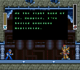 As the name suggests, this is a patch that "kinda" translates Rock Man X3 to english. However, unlike Her-Saki's Rock Man X translations that are indeed based on japanese versions, everything was done on an expanded USA rom, with all texts moved to the end of the game, so all needed script changes could be done in the game.Screenshots