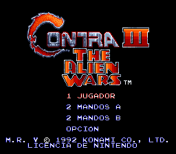 Here is a Spanish translation for the Super Nintendo title, Contra III The Alien wars.Screenshots