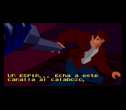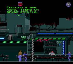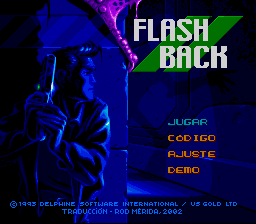 This patch translates Flashback for SNES from English to Spanish. It needs to be applied to a headered PAL / European ROM, to the version of it that includes 2 languages: English and French (ROM CRC32 checksum: 5DAFAC3E); not to the one that includes 3 languages: English, French and German. This will produce a patched ROM that completely replaces the English text with Spanish language, with all its special symbols and characters (¡, ¿, ñ, ü and accents), as well as low case and upper case letters. This patch also adds accents, "ç" symbol (called cedille) and lower case letters to the French text, since the original version of the game just included lower case letters into the English text, printing the French dialogs on screen just in uppercase letters with no accents, as a way to solve and avoid the need to include special symbols in the limited space for the ASCII table graphics (instead sacrificing unused ASCII symbols, like the asterisk, "@", "#", "*", etc.).Screenshots