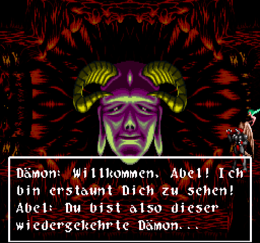German translation for "Majuu Ou" / "Majyouu Ou" or "King of Demons" for the Super Nintendo. Version 1.0 already contains German umlauts. Version 1.1 contains translated display titles for score and time, also there's a minor text correction. Version 1.2 comes with fully translated options menu and continue screen.Screenshots