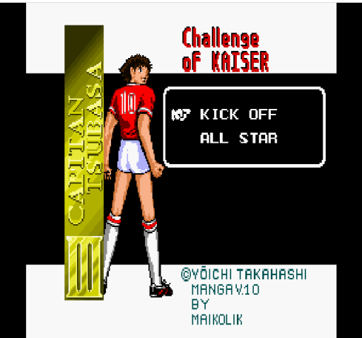 Simply apply patch to Captain Tsubasa 3 Koutei no Chousen (The Kaiser's Challenge) for Super Nintendo. This is the Japanese version of the ROM since it was never officially released outside Japan.Screenshots