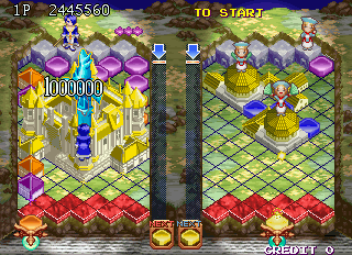 This is an EN translation of the story text (win quotes and endings) for the arcade version of Taito's Shenmo fiction-inspired VS puzzle game "Land Maker"