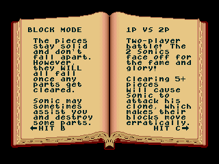 This is a slightly revised version of the older English translation made by D of the instructions at the beginning. While it was mostly okay, some lines were very cryptically translated (Such as "Sonic's Cinema Special Attack") and didn't explain the mechanics very well, as well as forgetting some entirely.Screenshots