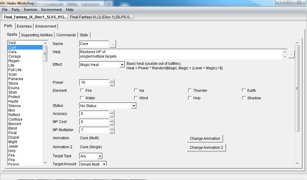 - Improvement hacking: spells, statistics, items, enemies, game script, etc... can be edited more or less well