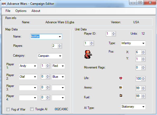The Advance Wars campaign editor allow to edit units and Commanders from each campaign scenario, to create new difficulties and strategies, no extra map data can be changed.Reviews