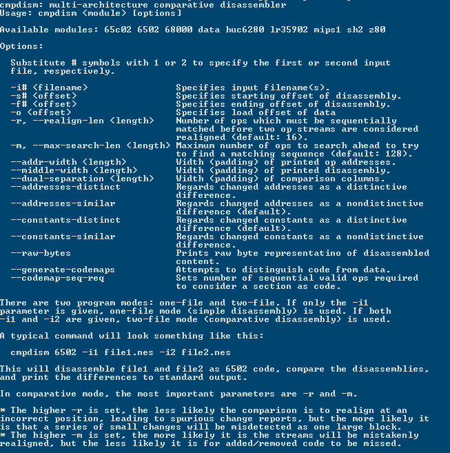 cmpdism is a "comparative disassembler" targeting multiple CPU architectures. Its chief advantage over other disassemblers is that it is specially designed to be able to compare the disassembled code of different revisions of a program and output the differences, accounting for possible differences in addresses and constants between the revisions. This makes it useful for comparing prototype and final versions of a program, or finding differences between differentReviews