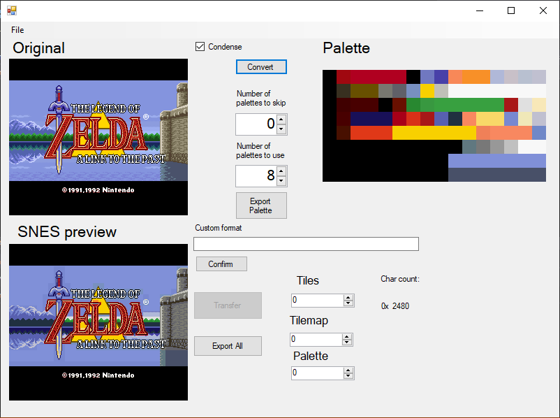 Welcome to the first released build of this tool. The goal of this tool is to make importing the images you like to the SNES easy. Hopefully, this is a simple enough tool to use.