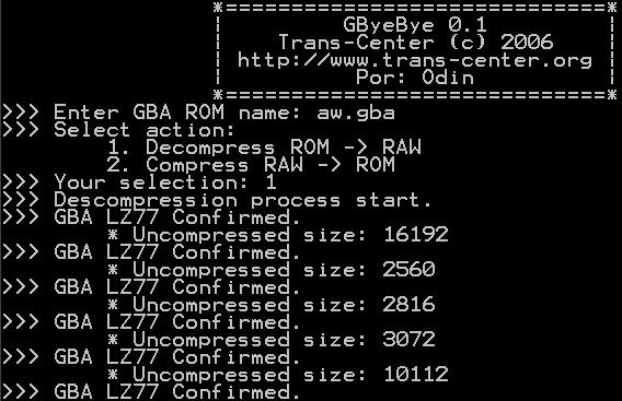 GBB or GByeBye is a program that allows you to decompress Gameboy Advance LZ77(for a moment). Specifically, data called from the GBA BIOS routines.Reviews