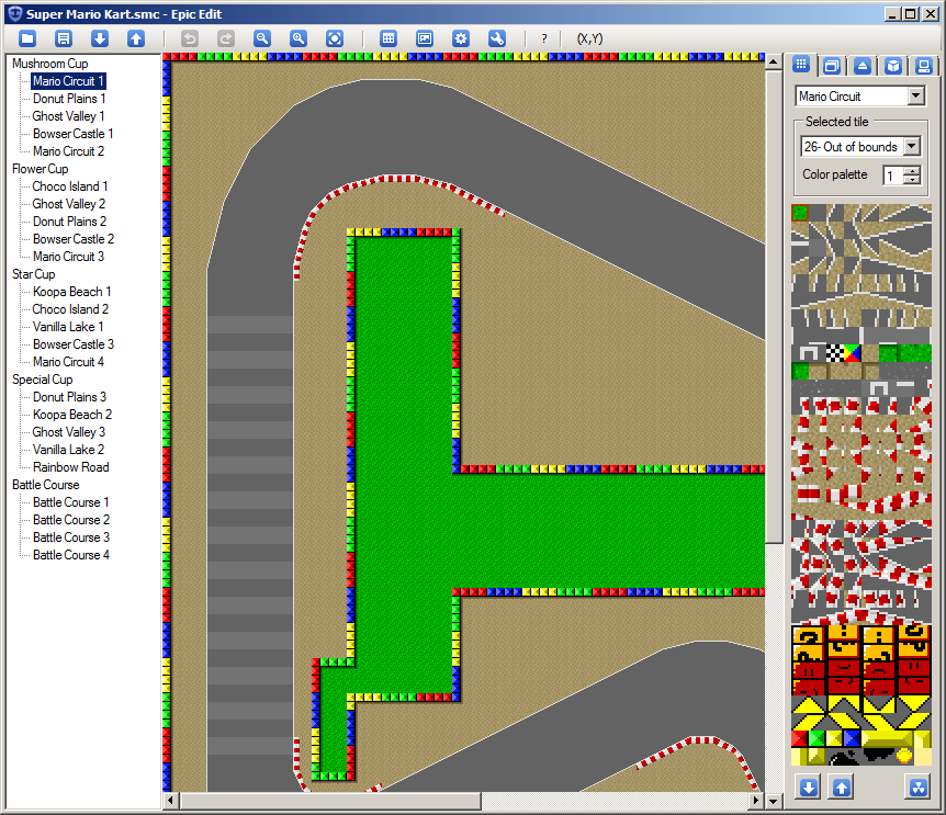 Epic Edit is a track editor for Super Mario Kart (Super Nintendo), which runs on Windows, Linux and Mac. It requires a Super Mario Kart ROM, which is not included. Games modified with Epic Edit can then be played on a real SNES console, or with an SNES emulator.Reviews